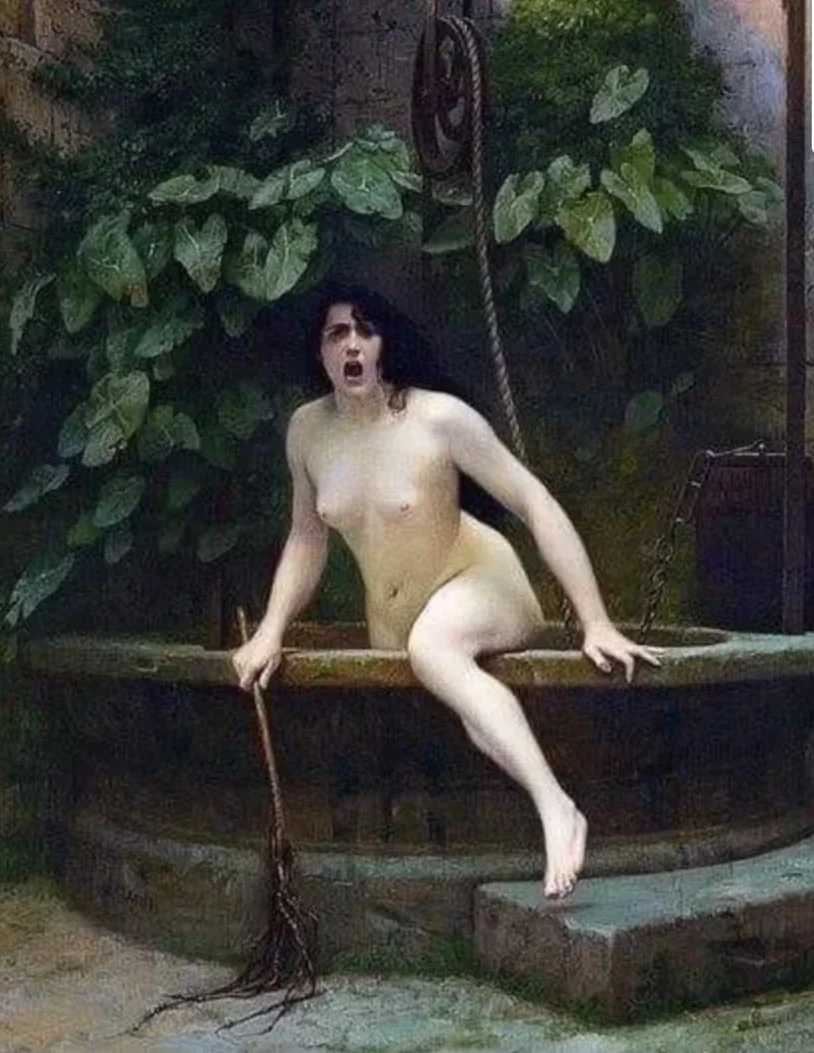 In the legend, Truth and Lie bathe together in a well on a beautiful day. Suddenly, Lie leaps out of the well, puts on truth’s clothes, and runs away. Furiously, Truth steps out of the well, nude, to fetch her clothing - only to be met with contempt from bystanders, horrified by her nakedness. The naked Truth crawls back into the well to “satisfy the needs of society.” This legend is accompanied by Jean-Léon Gérôme’s 1896 painting, “The Truth coming out of the Well” pictured below.